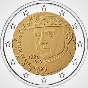 This coin commemorates the 100th anniversary of the death of Milan Rastislav Štefánik.